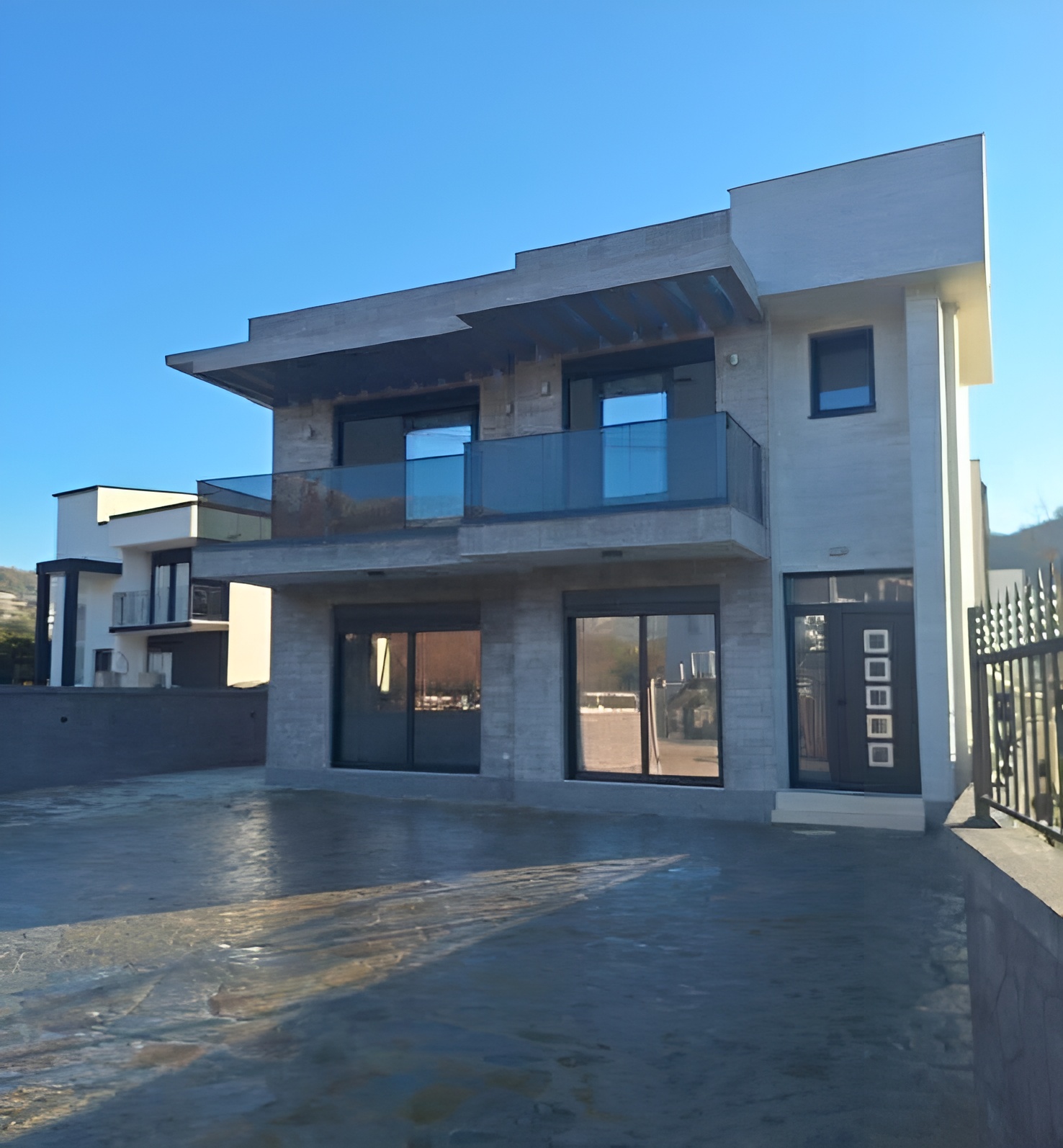 Sastoji se od 5 spavaćih soba, 2 kupatila i veliki dnevni boravak sa kuhinjom – open space koncept.