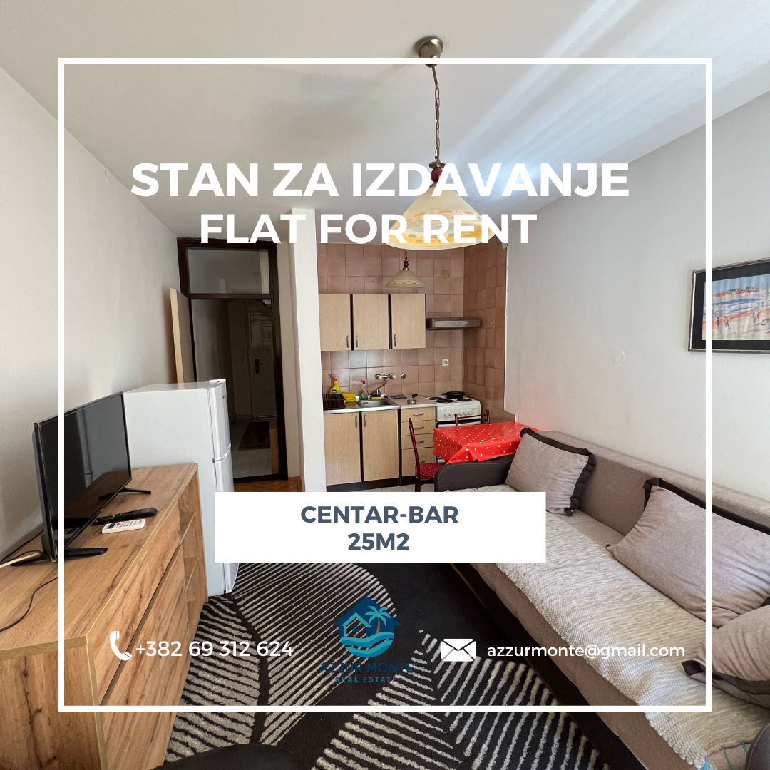 Garsonjera,25m2,Centar,Bar,Izdavanje