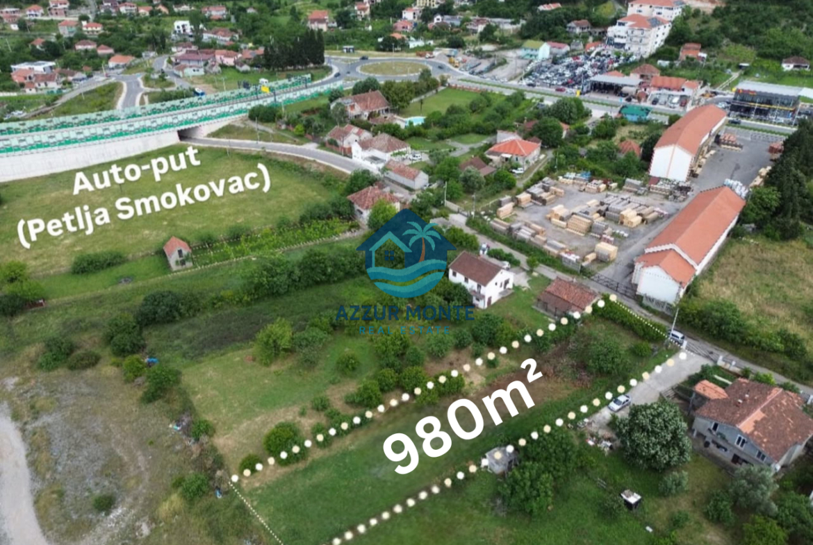 Na prodaju urbanizovan plac površine 980 m² na Zlatici u Podgorici, na oko 100 m od petlje Smokovac (auto-put Bar–Boljari).